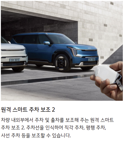 원격 스마트 주차 보조 기능은 작동 반응 속도가 다소 느려 대형 마트, 백화점 등 차량 통행이 많은 곳에서는 사용하기 어렵다는 단점이 있다. EV9 구매 시 원격 스마트 주차 보조 기능을 옵션으로 추가하지 않고 1달 정도 사용해 본 후 평생 이용 옵션을 선택할 수 있다는 점에서 운전자에게 다양한 선택지를 제공할 것으로 생각된다.