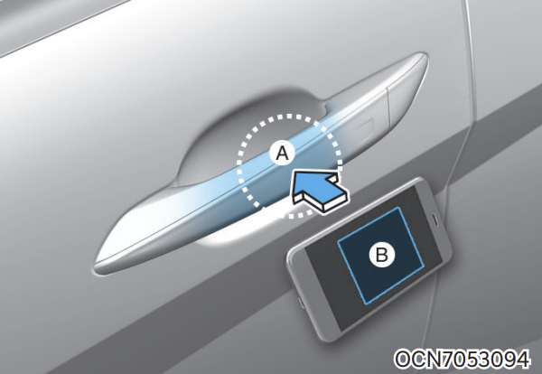 디지털 키를 처음 공유받은 스마트폰의 경우 차량의 도어 잠금/ 잠금 해제가 작동할 때까지 도어 핸들 인증 패드에 디지털 키(스마트폰)를 계속 대야 하며, 실내 인증 패드에서 시동을 거는 경우에도 최초 1회는 시동이 실패할 수도 있습니다.