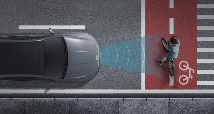 전방 충돌방지 보조 기능은 차량, 보행자, 자전거 탑승자가 나타나는 등 전방 충돌 위험이 감지되면 경고를 해주며, 경고 후에도 충돌 위험이 높아지면 자동으로 제동을 돕습니다.