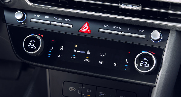쏘나타 디 엣지 최하위 프리미엄 트림은 매뉴얼 에어컨이 적용됩니다. 매뉴얼 에어컨은 운전자가 수동으로 온도 및 풍량, 풍향을 조절하는 에어컨입니다.
