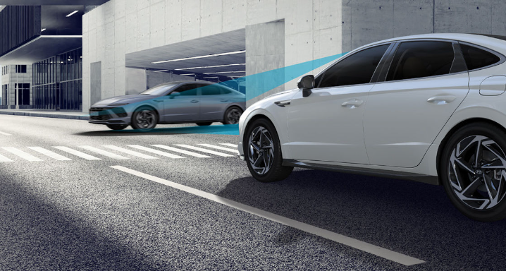 후방 교차 충돌방지 보조 기능은 후진 시 좌 / 우측에서 다가오는 차량과의 충돌 위험이 감지되면 운전자에게 경고하고, 경고 후에도 충돌 위험이 높아지면 자동으로 제동을 돕습니다.