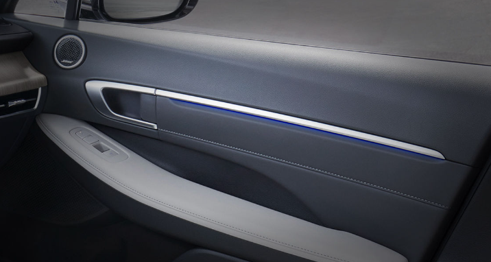쏘나타 디 엣지 프리미엄 트림에서 인포테인먼트 내비 1 옵션을 추가하면 크롬 인사이드 도어 핸들 내장재가 적용됩니다. 크롬 인사이드 도어 핸들은 문 안쪽 도어핸들 부분으로 크롬 내장재가 적용되어 고급스러움을 더했습니다.