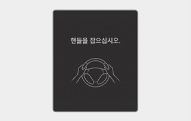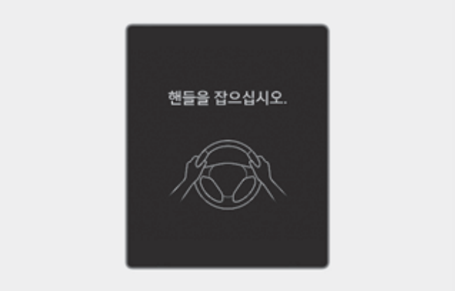 일정 시간 동안 스티어링 휠을 잡지 않으면 단계적으로 핸즈오프 경고문이 표시되고 경고음이 울립니다. 1단계는 경고문이 2단계는 경고문 (빨간색 스티어링 휠)과 경고음이 함께 작동합니다.