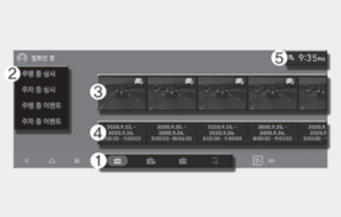 • 주차 중 상시: 주차한 동안의 영상을 묶음 으로 표시