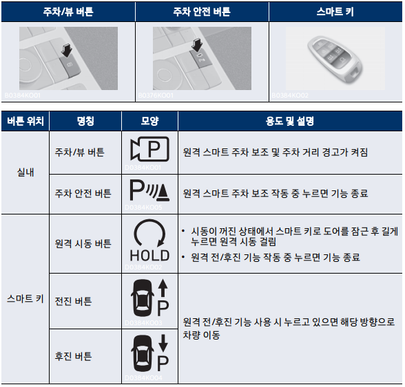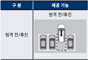 원격 전진 및 후진 기능은 스마트 키를 이용하여 차량 밖에서 원격으로 작동할 수 있습니다.