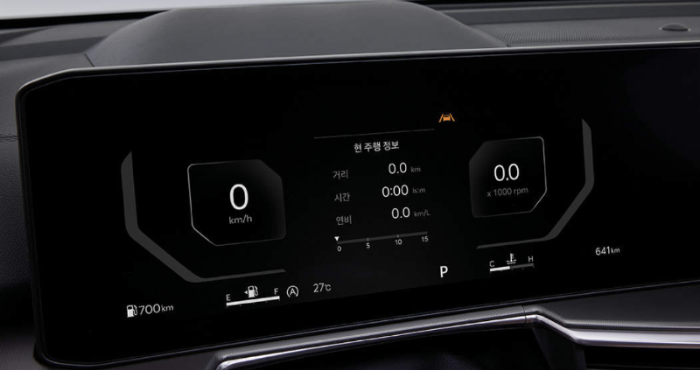 실내는 12.3인치 클러스터와 12.3인치 내비게이션을 하나의 화면처럼 연결한 파노라믹 커브드 디스플레가 적용된다. 기존 기아의 신차에서는 모두 적용되었던 부분이다. 다만, 최하위 프레스티지 트림에서는 파노라믹 커브드 디스플레이를 적용하기 위해서 12.3인치 클러스터 55만 원 옵션을 선택해야 한다.
