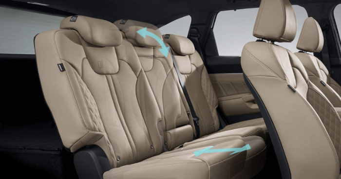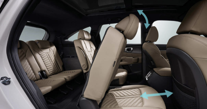 또한, 위 그림과 같이 슬라이딩과 리클라이닝 기능이 포함되어 2열 탑승자의 승차감 향상에 도움이 됩니다. 슬라이딩 및 리클라이닝 기능을 이용하여 좌석을 탑승자 신체에 맞춰 편안한 탑승이 가능합니다.