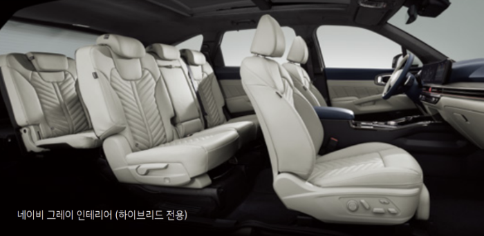 2열 독립시트(슬라이딩, 리클라이닝), 2열 윙아웃 헤드레스트, 3열 시트(5:5 폴딩, 유아용 시트 고정 장치), 2열 원터치 워크인, 후석 매뉴얼 에어컨(후석 보조 에어컨 필터 포함), C타입 USB 단자(충전용, 3열 2개)