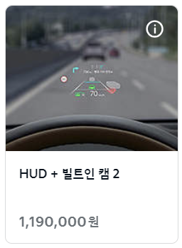 HUD + 빌트인 캠 2 옵션을 선택하면 헤드업 디스플레이, 빌트인 캠 2, 증강현실 내비게이션 3가지 기능이 적용됩니다.