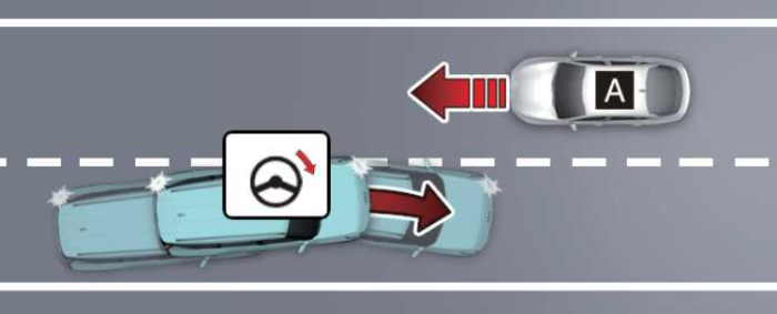 운전자가 추월을 위해 차선을 변경했을 때 맞은편에서 다가오는 차량 및 옆 차로의 선행 차량과 충돌 위험 발생 시 자동으로 회피 조향을 도와 사고를 예방합니다.