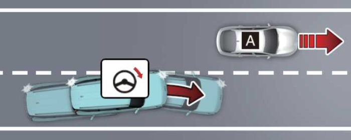회피 조향 보조 기능은 전방 차로 가장자리에 있는 차량, 보행자, 자전거 탑승자 혹은 차로 변경 중 후측방에 있는 차량과의 충돌 위험이 있을 경우 차량이 스티어링 휠을 자동으로 제어하여 회피 조향할 수 있도록 돕습니다.