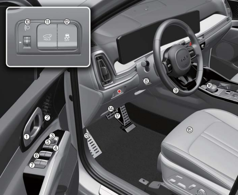 The new 쏘렌토 주행 중 궁금한 점이 있다면 이 글을 통해 확인하여 정확하고 편리하게 기능을 사용할 수 있도록 도움이 되었으면 합니다. The new 쏘렌토 내부의 버튼을 자세히 살펴보면 다음과 같습니다.