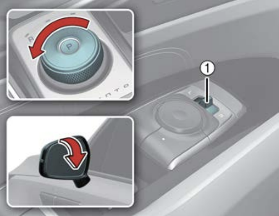 변속할 때는 반드시 브레이크 페달을 밟은 상태에서 전자식 변속 다이얼을 돌려 조작할 수 있습니다.