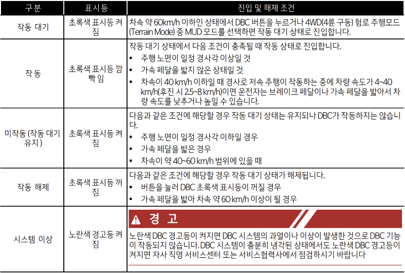 강원도의 산악 지형 주행 시 내리막길이 긴 구간을 지날 때 사용하면 운전자는 스티어링 휠 조작에 집중할 수 있기 때문에 매우 편리한 기능입니다.
