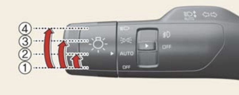 OFF 위치로 전조등 스위치를 돌릴경우 차량의 전조등이 모두 꺼집니다. OFF 위치는 추천하지 않는 위치입니다. 전조등 스위치를 OFF 위치에 둔 상태에서 차량을 주행할 경우 밤이 되어도 전조등이 켜져 있는지 확인이 어렵기 때문입니다. 전조등스위치는 AUTO 위치에 두는 것을 추천합니다.