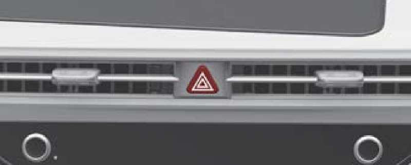 비상경고등 버튼을 누르면 시동 상태와 상관없이 작동하며 모든 방향지시등이 일제히 깜빡입니다. 다시 한번 누르면 해제되며 비상경고등이 깜빡이는 동안에 방향지시등은 작동하지 않습니다.