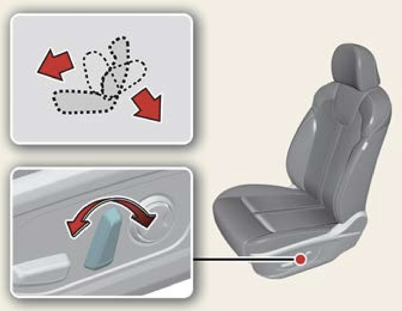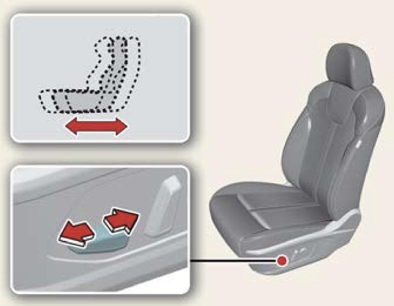 조절 스위치를 앞이나 뒤로 움직이면 좌석이 앞이나 뒤로 이동합니다. 스위치를 조절한 후 원하는 위치에서 손을 떼면 시트 이동이 중지됩니다.