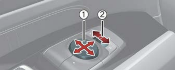실외 미러 조절 스위치 작동은 시동 상태와 관계없이 조절이 가능합니다. 스위치 ② 를 왼쪽 또는 오른쪽으로 밀고, 미러 조절 스위치 ① 부분을 눌러 실외 미러를 조절할 수 있습니다.