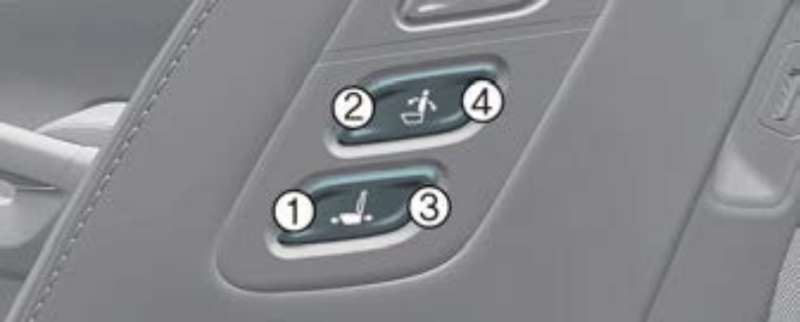B타입의 전동식 허리지지대가 적용된 경우 조절 스위치의 윗부분 ③을 누르면 등받이 허리지지대가 위로 이동하고, 스위치의 아랫부분 ④를 누르면 허리지지대가 아래로 이동합니다.