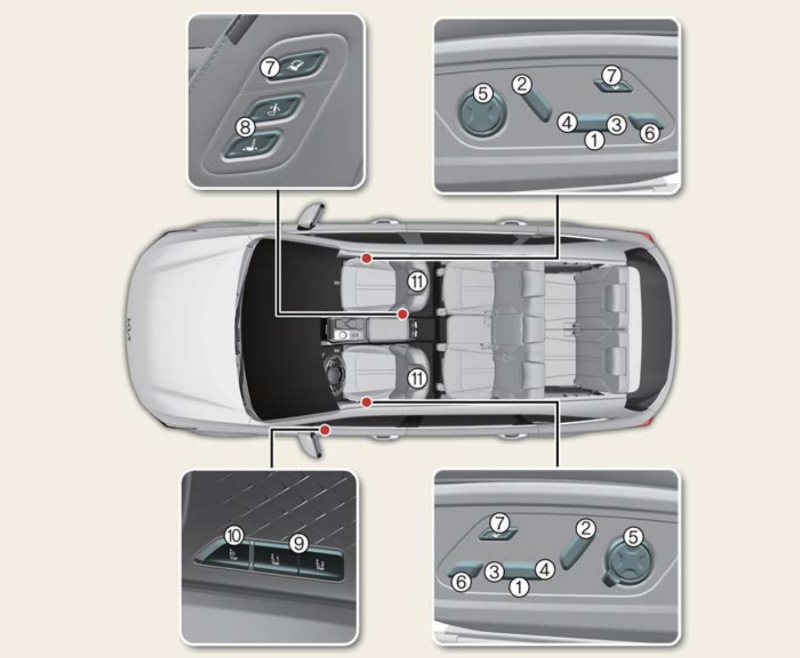 7) 뒷좌석 유리창 개폐 잠금 버튼 / 전자식 차일드 락 버튼