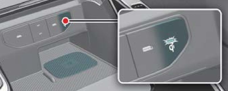 중앙 콘솔 앞쪽에 휴대폰 무선 충전을 위한 시스템이 적용되어 있습니다. 무선 충전이 지원되는 스마트폰을 충전패드 위에 올려놓으면 충전이 시작됩니다.