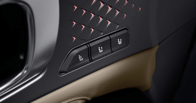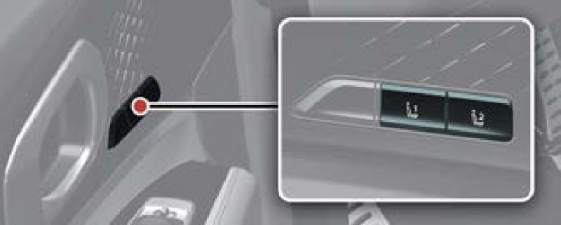 운전 자세 메모리 시스템은 운전석 시트, 스티어링 휠, 실외 미러의 위치를 조절할 수 있으며, 헤드업 디스플레이의 디스플레이 모드, 높이, 회전, 증강현실 매칭 조정이 가능합니다. 운전 자세 메모리 시스템은 2개로 설정이 가능합니다. 위 사진의 도어에 설치되 버튼을 눌러 간단히 사용할 수 있습니다.