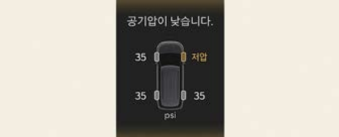공기압이 낮아진 타이어를 감지하였을 때 클러스터에 타이어 공기압 경고등과 개별 저압 타이어 위치가 클러스터에 표시됩니다.