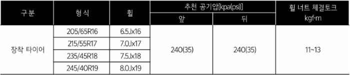 | 시그니처 | 17인치 외산 타이어 & 휠 | 19인치 외산 타이어 & 휠 |