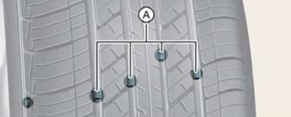 타이어가 균일하게 마모되면 트래드부에 이어진 타이어 마모한도 표시밴드가 나타납니다. 타이어 접지면에 남은 홈의 깊이가 일반도로 주행 조건에서 1.6mm 이하, 고속도로 주행 조건에서는 2.4mm 이하일 경우 타이어를 교체하는 것이 좋습니다.