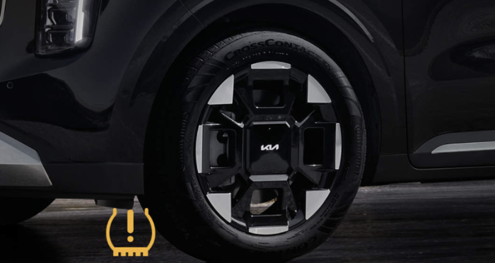 각 휠에 장착된 센서를 통해 일정 기준 이하로 공기압이 떨어진 공기압을 감지하면 클러스터에 경고를 통해 운전자에게 알립니다.