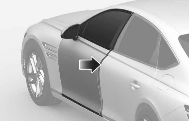 고스트 도어 클로징 기능이 적용된 경우 승하차 시 도어를 닫을 때 옷자락 등이 도어와 차체 사이에 끼이지 않도록 주의해야 합니다. 또한 도어가 살짝 열려 있을 경우 자동으로 닫히므로 그 사이에 손가락을 넣으면 위험할 수 있습니다.