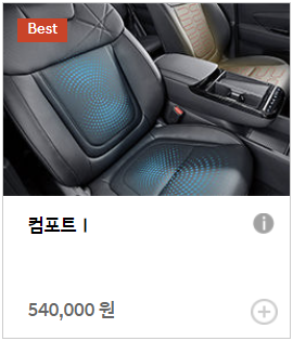 The new 투싼 컴포트 1 옵션은 모던 트림 선택 시 54만 원에 추가 가능합니다. 컴포트 1 옵션을 추가하면 1열 통풍 시트, 2열 열선시트, 2열 폴딩레버가 적용됩니다.
