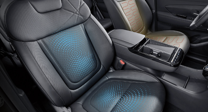 The new 투싼 최하위 모던 트림 선택 시 1열에 열선 시트만 기본 적용됩니다. 다만 통풍 시트가 적용되지 않는다는 큰 단점이 있습니다. 여름철 쾌적한 주행을 위해 컴포트 1 옵션을 선택하여 1열에 통풍 시트를 추가하는 것이 좋습니다.