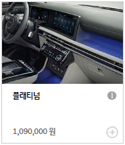 플래티넘 옵션은 109만 원으로 BOSE 프리미엄 사운드, 디지털 키 2, 앰비언트 무드램프 3가지 기능을 추가할 수 있습니다.