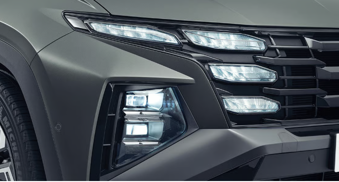 The new 투싼 최상위 인스퍼레이션 트림 외관에는 프로젝션 타입의 Full LED 헤드램프, 히든라이팅 주간주행등, 지능형 헤드램프, LED 리어 콤비 램프가 적용됩니다.