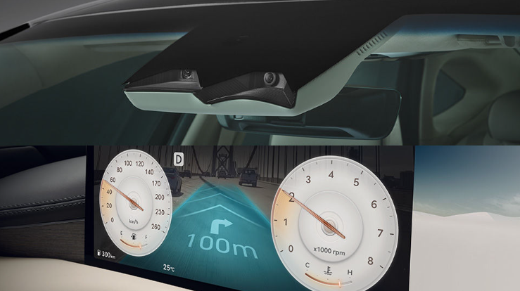 증강현실 내비게이션은 전방 카메라로 촬영한 영상을 클러스터에 표시하여 내비게이션 상의 목적지를 3D 증강현실로 표시하여 운전자가 직관적으로 길을 확인할 수 있는 첨단 기능입니다.