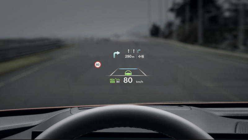 특히 첨단 운전자 보조 기능의 정보가 매우 유용합니다. 스마트 크루즈 컨트롤, 차로 유지 보조, 차로 안전 표시, 후측방 안전 표시, 고속도로 주행 보조 등 다양한 기능이 작동되고 있는지 헤드업 디스플레이를 통해 즉시 확인할 수 있습니다.