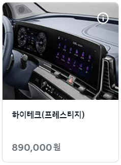 다만 하이테크 옵션을 추가하기 위해서는 12.3인치 내비게이션 옵션을 반드시 추가해야 합니다. 최하위 프레스티지 트림은 여기에 컨비니언스 옵션까지도 추가가 필요합니다.