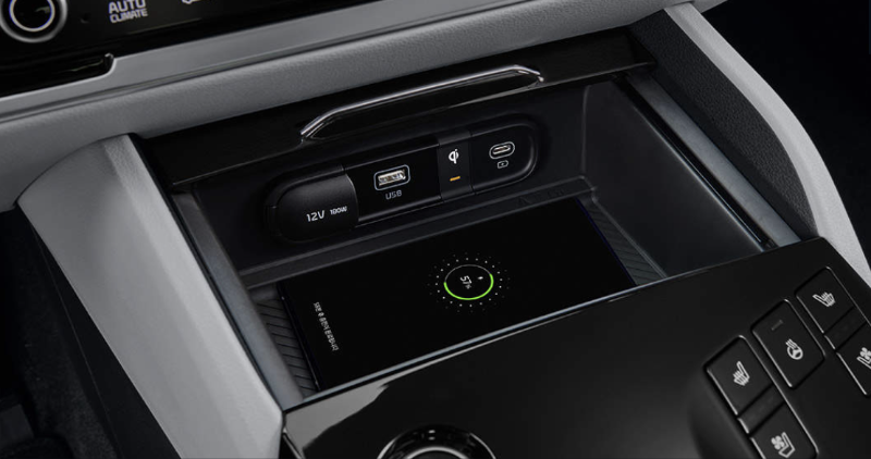 2024 스포티지 노블레스 트림은 스마트폰 무선 충전 기능이 기본 적용되며, 프레스티지 트림은 하이테크 옵션을 추가하면 스마트폰 무선 충전 시스템이 적용됩니다.