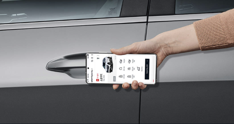 2024 스포티지에 적용되는 기아 디지털 키 기능은 스마트 키 없이 NFC가 장착된 스마트폰이나 카드 키로 도어 및 시동을 근접 제어할 수 있으며, BLE(Bluetooth Low Energy, 저전력 블루투스) 기능을 활용하여 도어 및 시동의 원격 제어가 가능합니다.