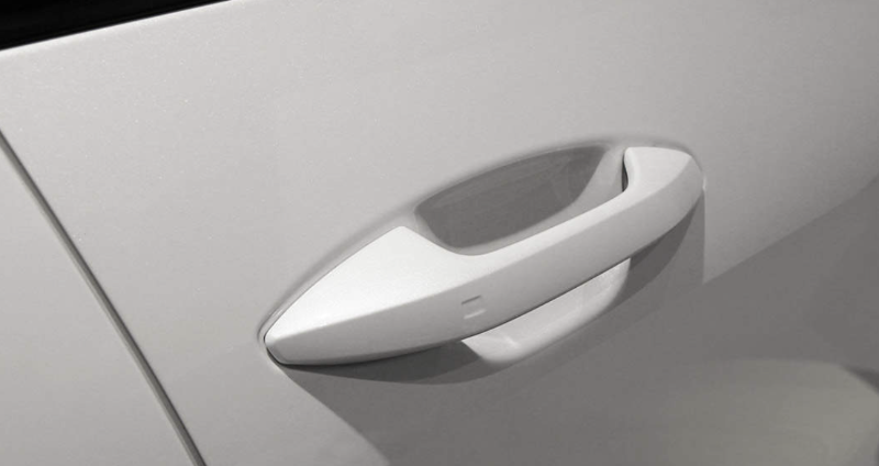하이테크 옵션을 선택하면 버튼 타입이 터치센서 타입으로 변경되어 적용됩니다. 앞좌석 아웃사이드 도어 핸들의 버튼을 터치 타입으로 제작하여 기아 디지털 키 사용이 가능해집니다.