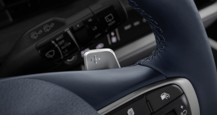 2024 스포티지 프레스티지 트림에서 모니터링 팩 옵션을 선택하면 패들 쉬프트가 적용됩니다. 패들 쉬프트 기능을 이용하면 스티어링 휠에서 손을 떼지 않고 변속할 수 있는 변속 장치입니다.