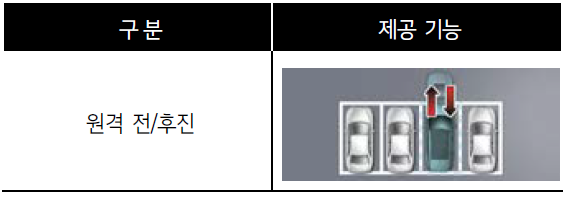 원격 스마트 주차 보조 기능은 차량 센서를 이용하여 주차공간을 탐색하고 스티어링 휠, 속도, 변속을 자동으로 제어하여 주차 및 출차를 도와주는 기능입니다.