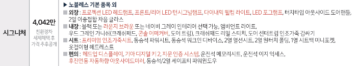 | 1.6 가솔린 터보 | 프레스티지 | 노블레스 | 시그니처 |