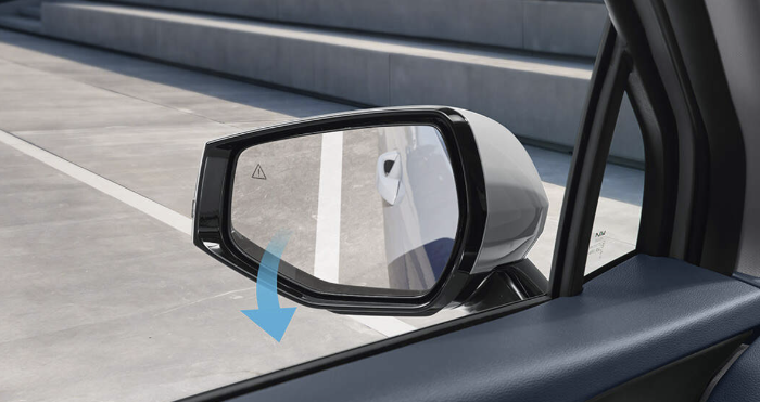 운전자가 후진을 위해 변속기를 후진으로 변경하면 아웃사이드 미러의 각도가 자동으로 하향 변경 되는 기능입니다. 각도가 변경된 아웃사이드 미러는 아웃사이드 미러 선택 스위치 변경 또는 변속 레버가 후진 위치에서 다른 위치로 변경될 경우 자동으로 원위치됩니다.