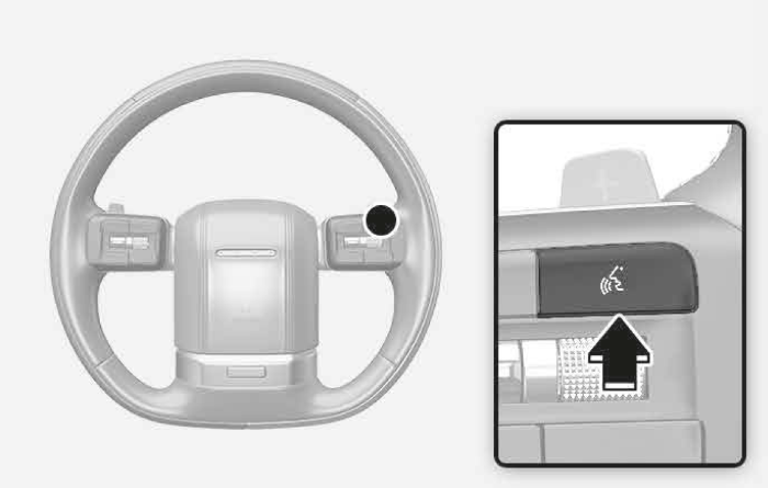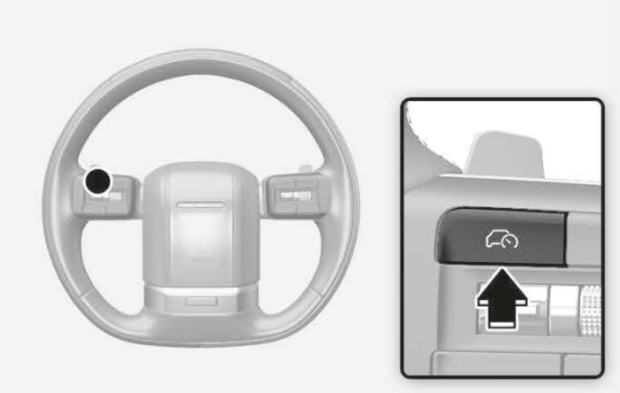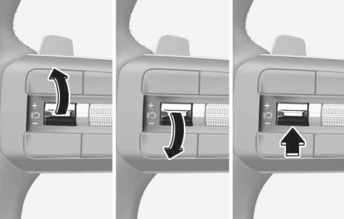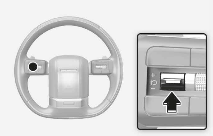 + / - 스위치를 누르면 스마트 크루즈 컨트롤 기능이 일시 정지됩니다. 스마트 크루즈 컨트롤이 일시 해제된 후 다시 켜려면 + 스위치를 올리거나, - 스위치를 내리거나, + / - 스위치를 누르면 됩니다.