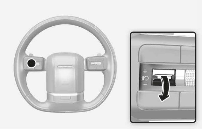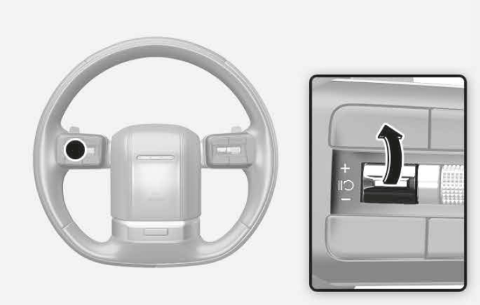 + 스위치를 짧게 올리면 설정속도가 1km/h 단위로 증가합니다. 설정속도를 10의 배수로 빠르게 높이려면 + 스위치를 길게 올리면 됩니다. 속도는 최대 200km/h까지 설정할 수 있습니다. + 스위치를 길게 올려 설정속도를 빠르게 변경하면 주행속도가 빠르게 증가할 수 있어 주의가 필요합니다.