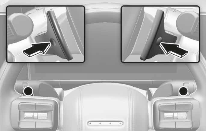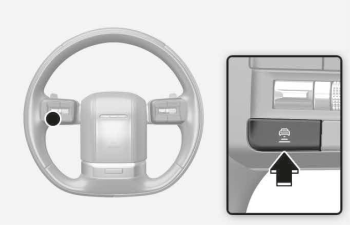 시동이 켜진 상태에서 차로 주행 보조 버튼을 길게 눌러 차로 이탈 방지 보조 기능을 끄고 켤 수 있습니다. 차로 이탈방지 보조가 켜지면 클러스터에 표시등이 회색 또는 초록색으로 점등됩니다.