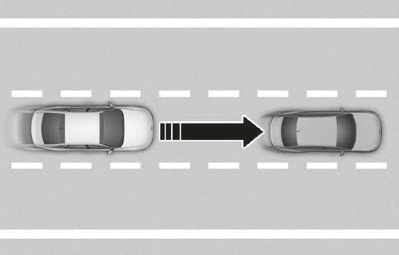 차량의 속도가 90km/h 기준으로 4단계는 약 52.5m, 3단계는 약 40m, 2단계는 32.5m, 1단계는 25m로 설정됩니다. 차간거리 버튼을 누르면 4단계 → 3단계 → 2단계 → 1단계 → 4단계 순으로 변경됩니다.