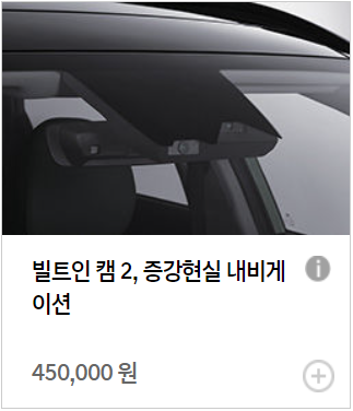 빌트인 캠 2 옵션은 45만 원으로 빌트인 캠 2 및 증강현실 내비게이션을 추가할 수 있습니다. 빌트인 캠 2 기능은 기존 빌트인 캠 1에 비해 화질이 좋아졌으며, 마이크가 설치되어 음성 녹음이 가능해졌습니다.